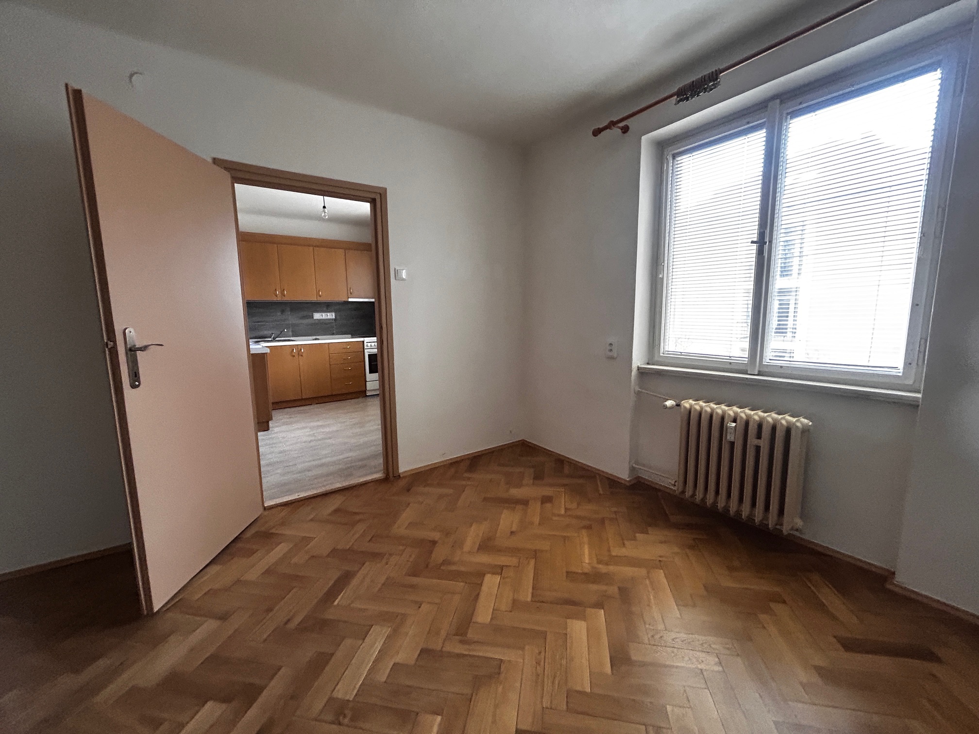 Bytová jednotka o velikosti cca 32m2 je zařízena kuchyňskou linkou včetně dřezu, varné desky včetně elektrické trouby a digestoře. Koupelna je osazena sprchovým koutem, umývadlem, včetně WC a přípojkou na pračku. Dispozičně byt 1+1 sestává ze vstupní chodby vybavené šatní skříní s úložným prostorem, kuchyně a prostorného obytného pokoje kde je předpokládána také spací část. Vytápění bytu je dálkové pro celý objekt a zálohy jsou dle m2. Okna jsou původní včetně žaluzií, podlahová krytina vinyl, dubové parkety a dlažba v koupelně. Nájemce si uzavře vlastní smlouvu s poskytovatelem elektrické energie firmou E.on. Tento dlouhodobý pronájem doporučujeme max. pro dvě osoby a je k dispozici ihned.